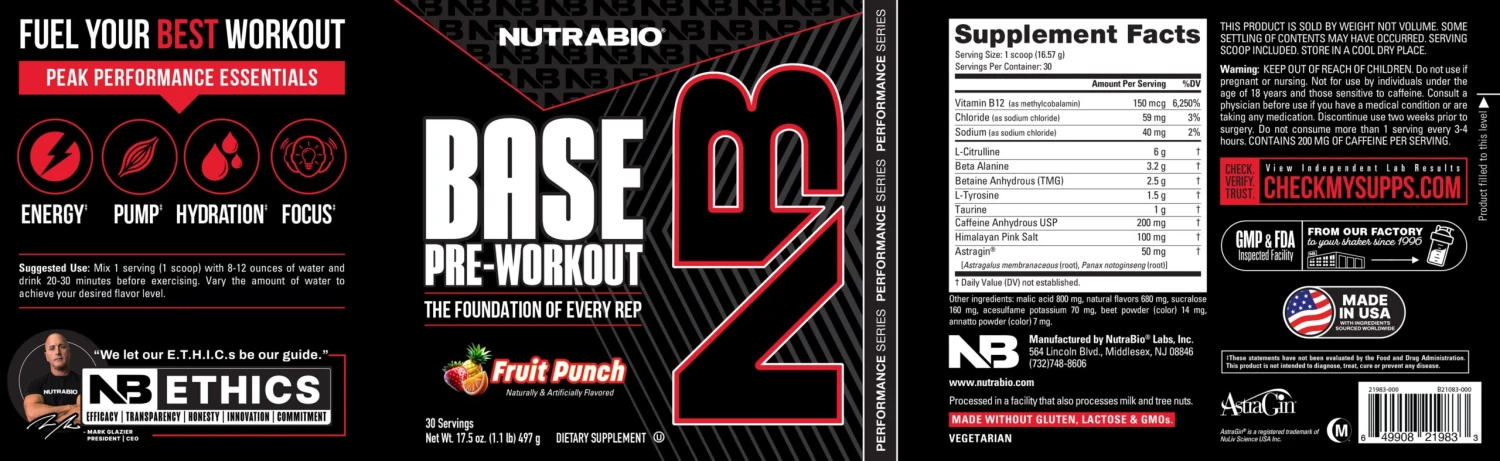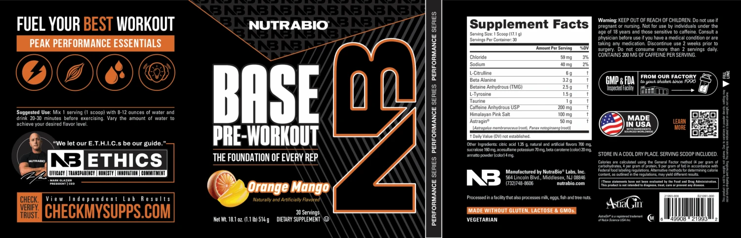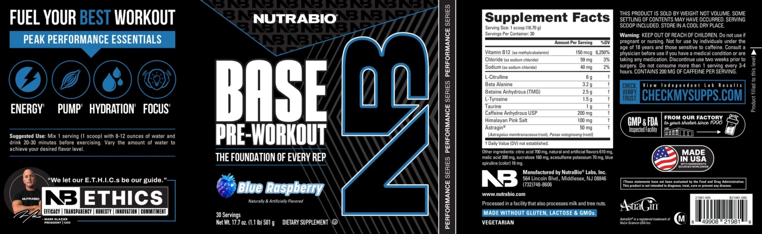 Get ready to experience workouts the way they should feel — energized, focused, and productive. NutraBio Base Pre-Workout delivers clean, consistent performance support without the jitters or crash, making it perfect for morning lifts, after-work training sessions, or weekend workouts. With transparent labeling and proven ingredients, you can trust that you’re giving your body exactly what it needs to push through challenging sets and maintain intensity from your first exercise to your last. No unnecessary extras, no proprietary blends — just honest, effective ingredients that work as hard as you do.