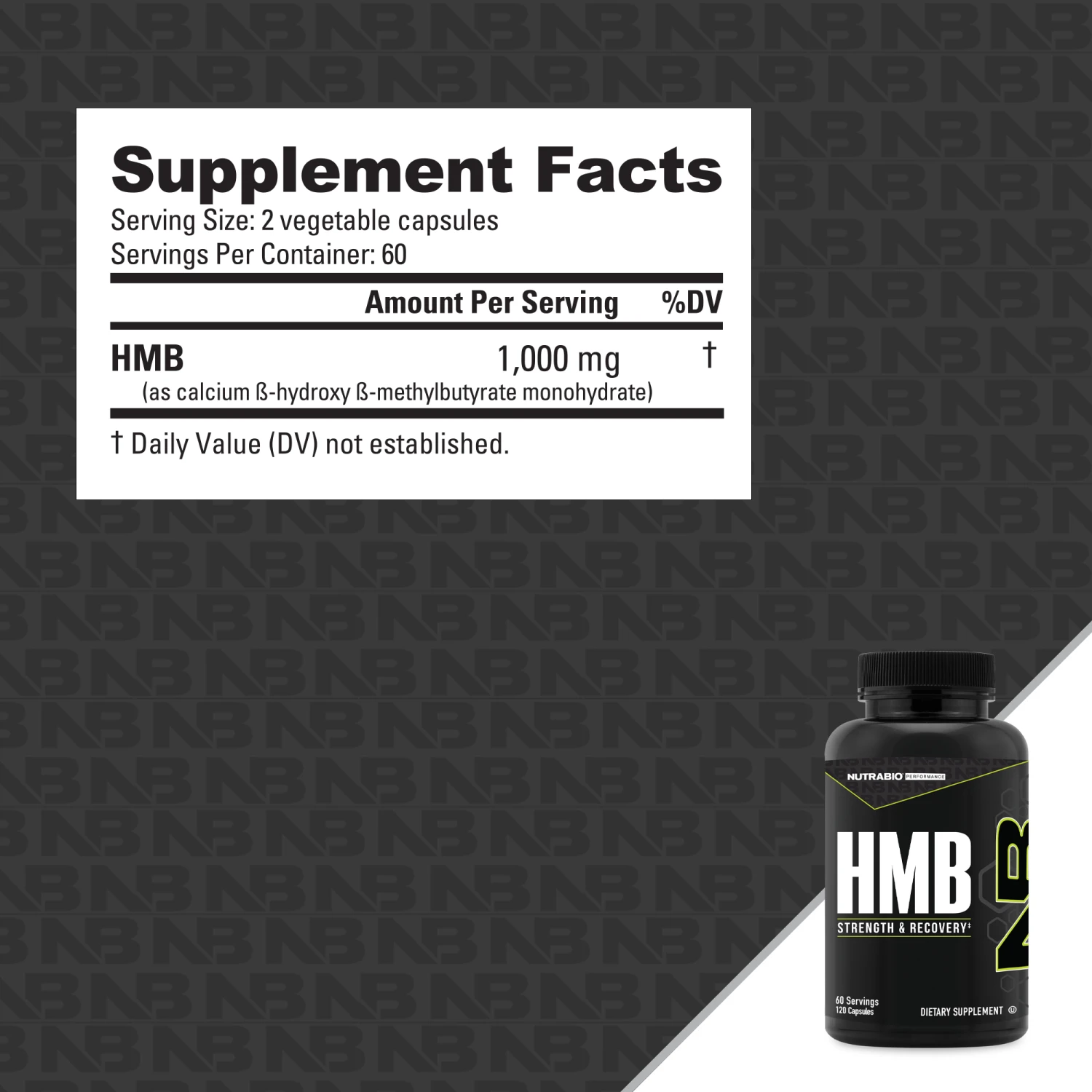 Elevate your training with NutraBio HMB, a potent supplement designed to significantly enhance strength, power, and muscle recovery. Formulated with 1000mg of HMB (beta-hydroxy beta-methylbutyrate), an active metabolite of leucine, this product has been clinically proven in over 50 human studies to effectively improve lean muscle mass and aid in recovery.