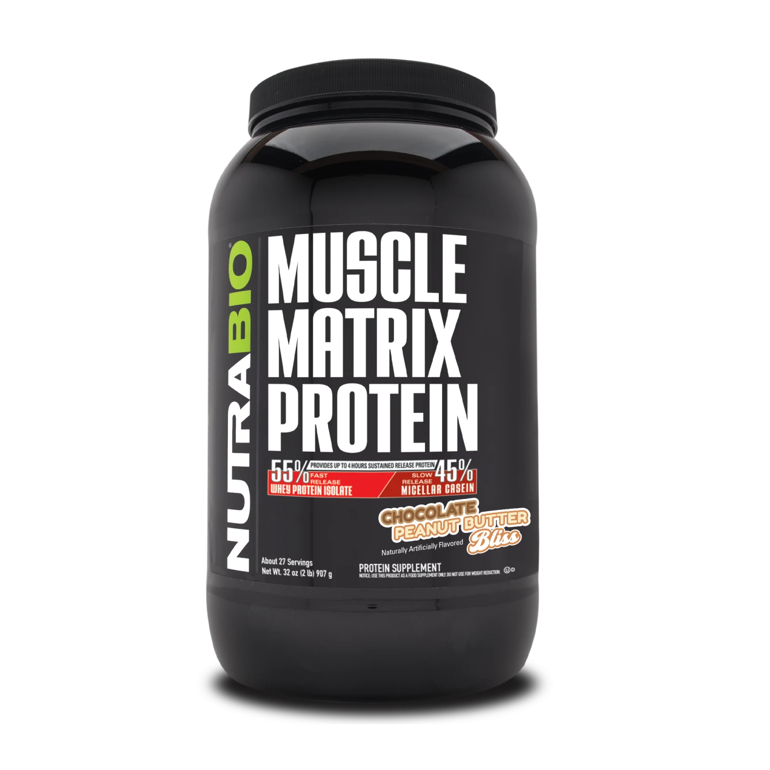 Don’t cheat your gains by using inferior protein sources. NutraBio Muscle Matrix combines two of the highest-quality protein sources to provide your muscles with 25 grams of protein per serving to support muscle growth while also helping you reach your daily protein intake.