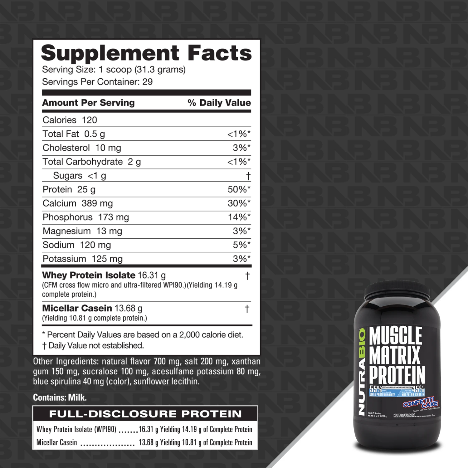 Muscle Matrix contains no low-quality whey concentrate or other inferior proteins, added carbs, maltodextrin, dextrose, creamers, or any other fillers — just pure, cold pressed, cross flow micro and ultra-filtered non-denatured protein to help maximize muscle recovery and growth.